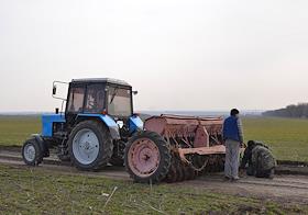 Начало посевной в прифронтовом селе Коньково в Тельмановском районе Донецкой области.