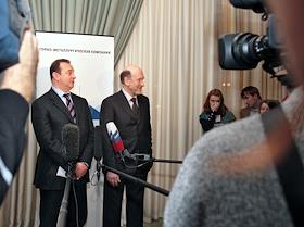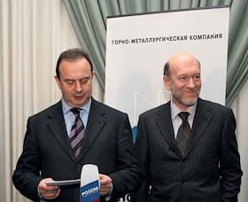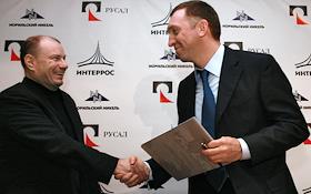 Владимир Потанин, президент компании "Интеррос", и Олег Дерипаска, предприниматель, владелец…