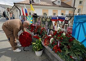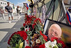 Стихийный мемориал, посвященный погибшему в авиакатастрофе главе ЧВК "Вагнер" Евгению Пригожину в…
