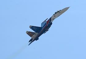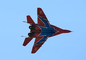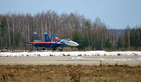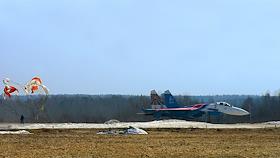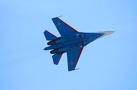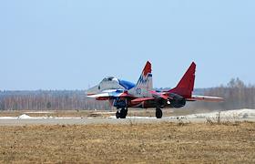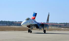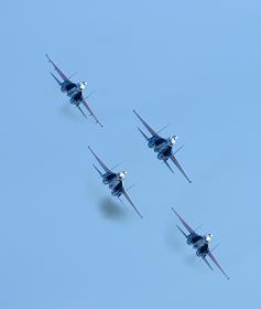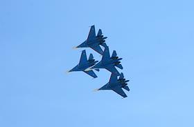 Пилотажные группы «Стрижи» и «Русские витязи» выступают с показательной программой в честь 75-летия…