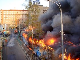 Пожар в торговых палатках, расположенных на Ленинградском проспекте у дома № 77/2 стр 2.