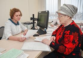 Жители города на приёме у врача в городской поликлинике №191.