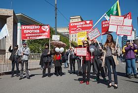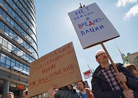 Митинг против закона о "реновации пятиэтажек" на проспекте Сахорова.