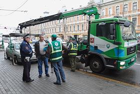 Эвакуация автомобиля с тротуара на Проспекте Мира.
