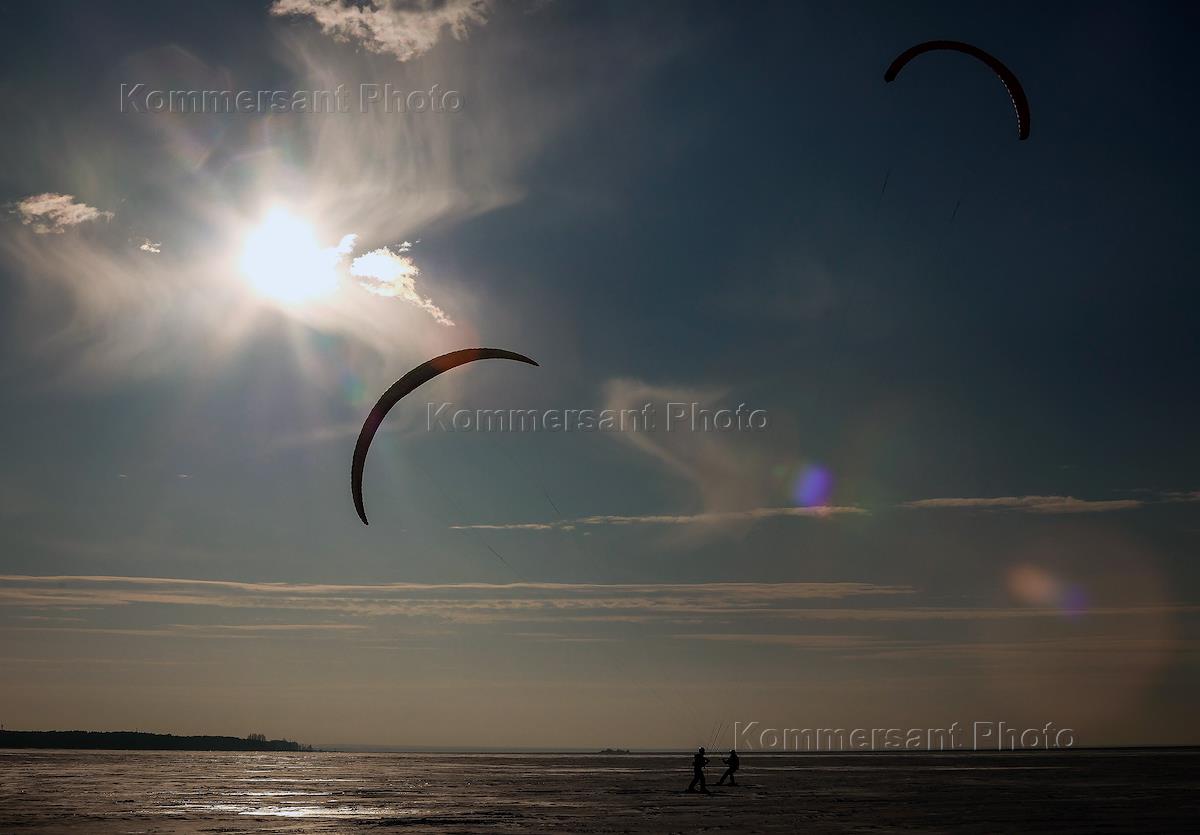Соревнования в рамках «Кубка Сибири» по сноукайтингу на льду акватории Обского моря в Новосибирске.