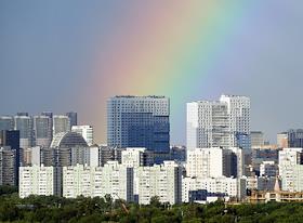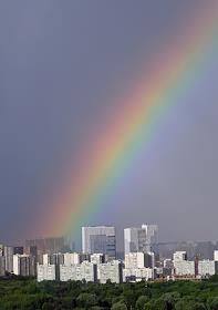 Погода в Москве. Радуга после дождя над районом Хорошёво-Мневники.