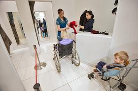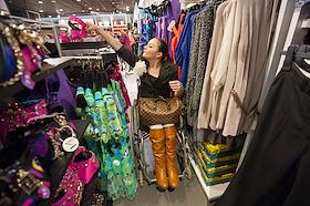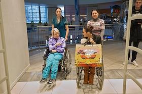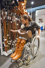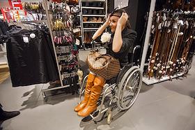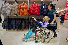 Инвалиды покупают одежду в торговом центре "Атриум".