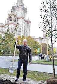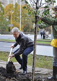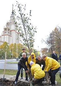 Посадка яблонь у здания МГУ.