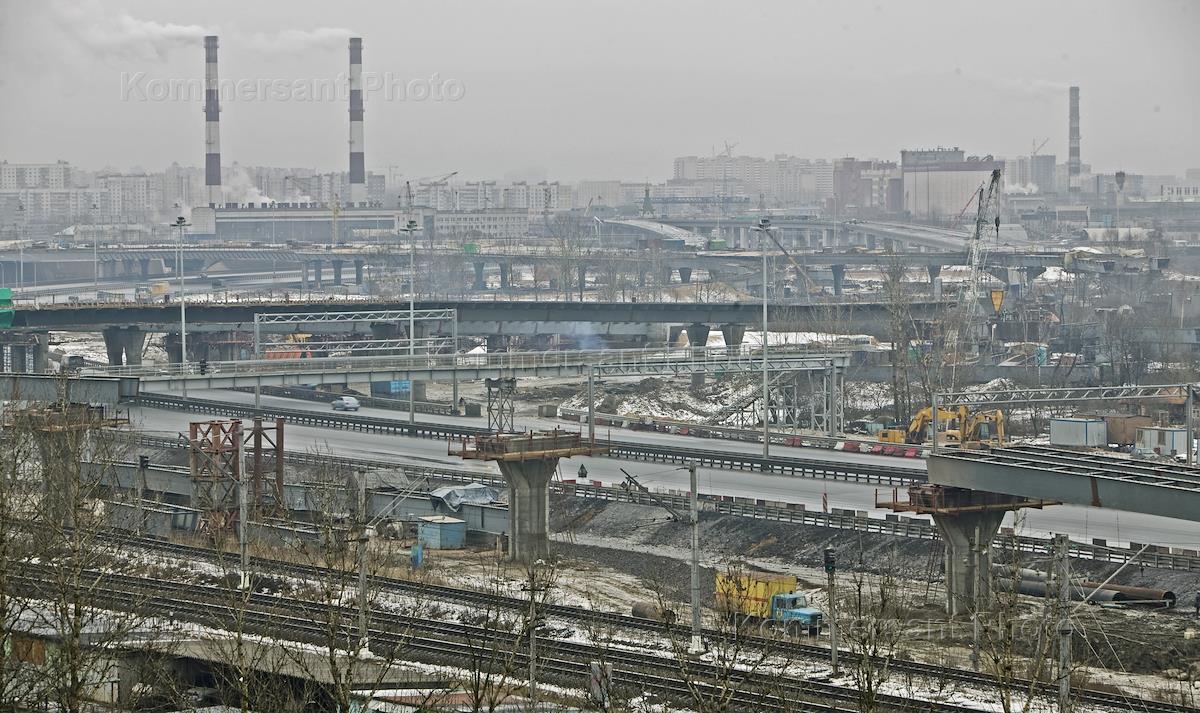 Строительство КАД в районе пересечения Дачного пр. и Пр Народного Пополчения.