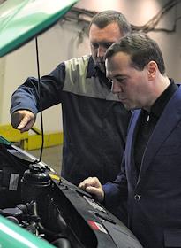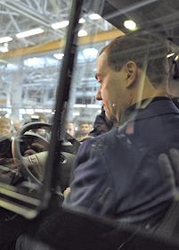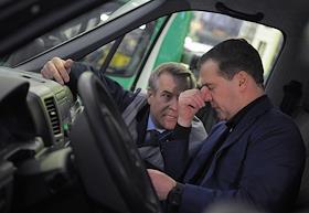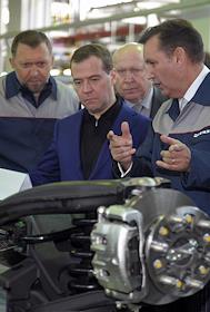Председатель Правительства РФ Дмитрий Медведев во время посещения Горьковского автомобильного завода…