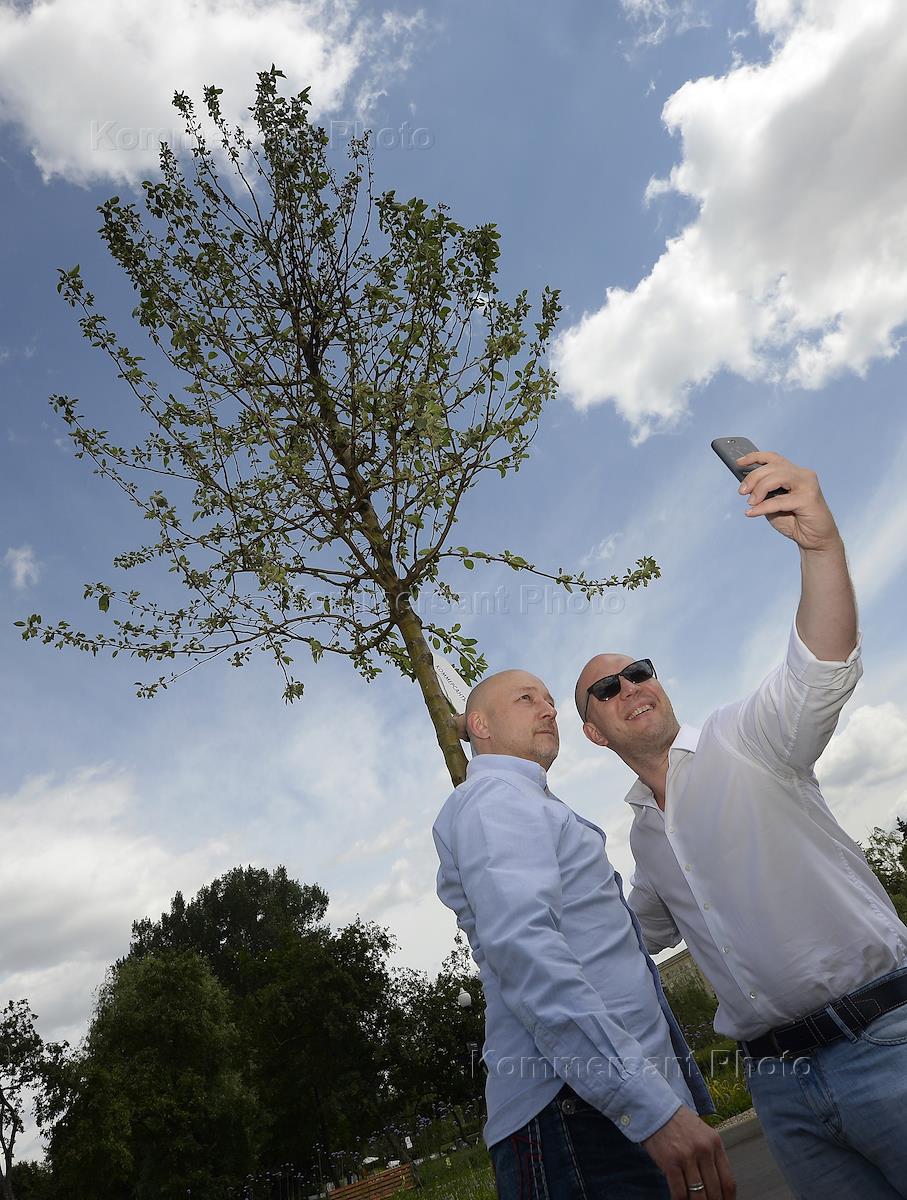 Посадка дерева на аллее Прессы в Парке Горького президентом ИД "Коммерсантъ" Владимиром Желонкиным и…