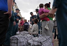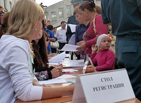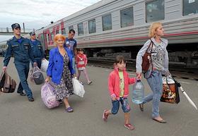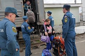 Прибытие первой партии беженцев с Украины в город Киров на поезде Киров-Адлер.