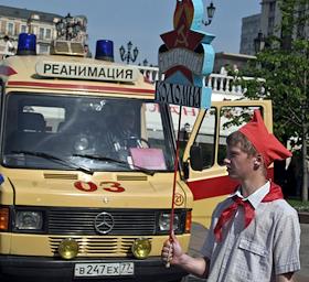 День Пионерии на Красной Площади. Геннадий Зюганов принимает детей в пионеры.
