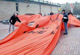 Подготовка гиганской майки символикой ФК "Шахтер" Донецк.