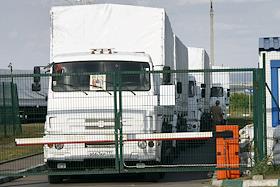 Конвой с гуманитарной помощью для жителей юго-востока Украины на российско-украинской границе.