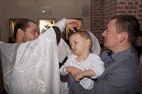 Таинство крещения в Храме святителя Николая на Арцеуловской аллее 23 в Санкт-Петербурге.