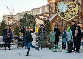 Чемпионат по метанию елок около сквера с фонтаном в районе улицы Вересаева.
