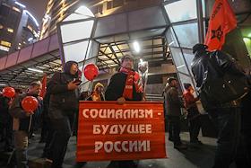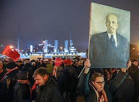 Несогласованное шествие сторонников КПРФ в честь 101 годовщины Октябрьской революции.