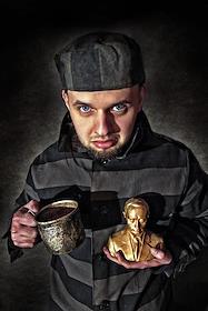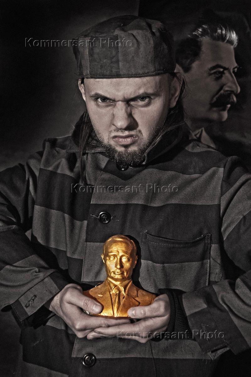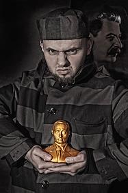 Фотоэтюд. Зэк с бюстом Путина и портрет Сталина.