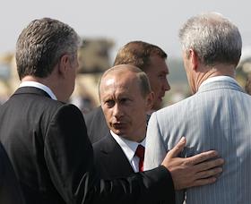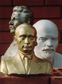 Бюст Путина на фоне бюстов Ленина и Сталина.
