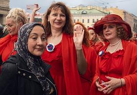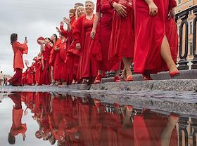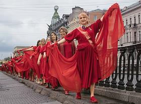 Всероссийская акция "Проект в красных платьях" в Санкт-Петербурге.