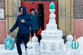 Владимир Кузьмин, житель Санкт-Петербурга создает снежную копию храма Спаса на Крови во дворе на…