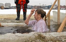 Праздник Крещения Господня в Санкт-Петербурге на реке Неве и у Патропавловской крепости.