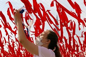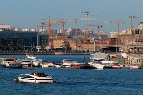 Переполненный пляж Парка 300-летия в Санкт-Петербурге.