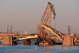 Техническая разводка Биржевого моста в рамках очередного этапа капитального ремонта переправы.