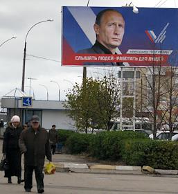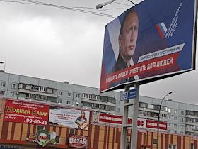 Плакат с символикой "Единой России" и Общероссийского народного фронта на здании психиатрической…