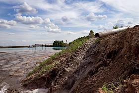 Золоотвал Новосибирской ТЭЦ-5. Озеро является гидротехническим сооружением, яркие цвета которому…