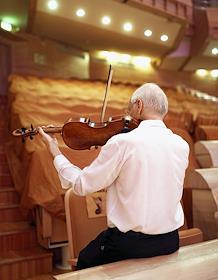 Неизвестный со скрипкой в пустом зале московского Дома Музыки.