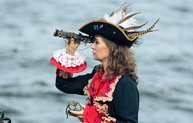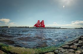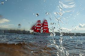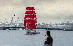 Бриг "Россия" на причале в акватории Невы напротив Петропавловской крепости во время подготовки к…