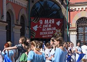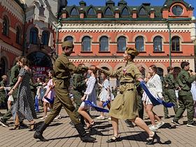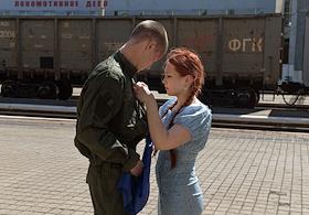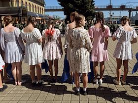 Вальс Победы на железнодорожном вокзале в Дебальцево (ДНР).