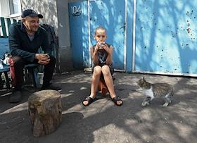 Раздача куличей представителями движения "Народный фронт" ЛНР жителям на прифронтовых территориях и…