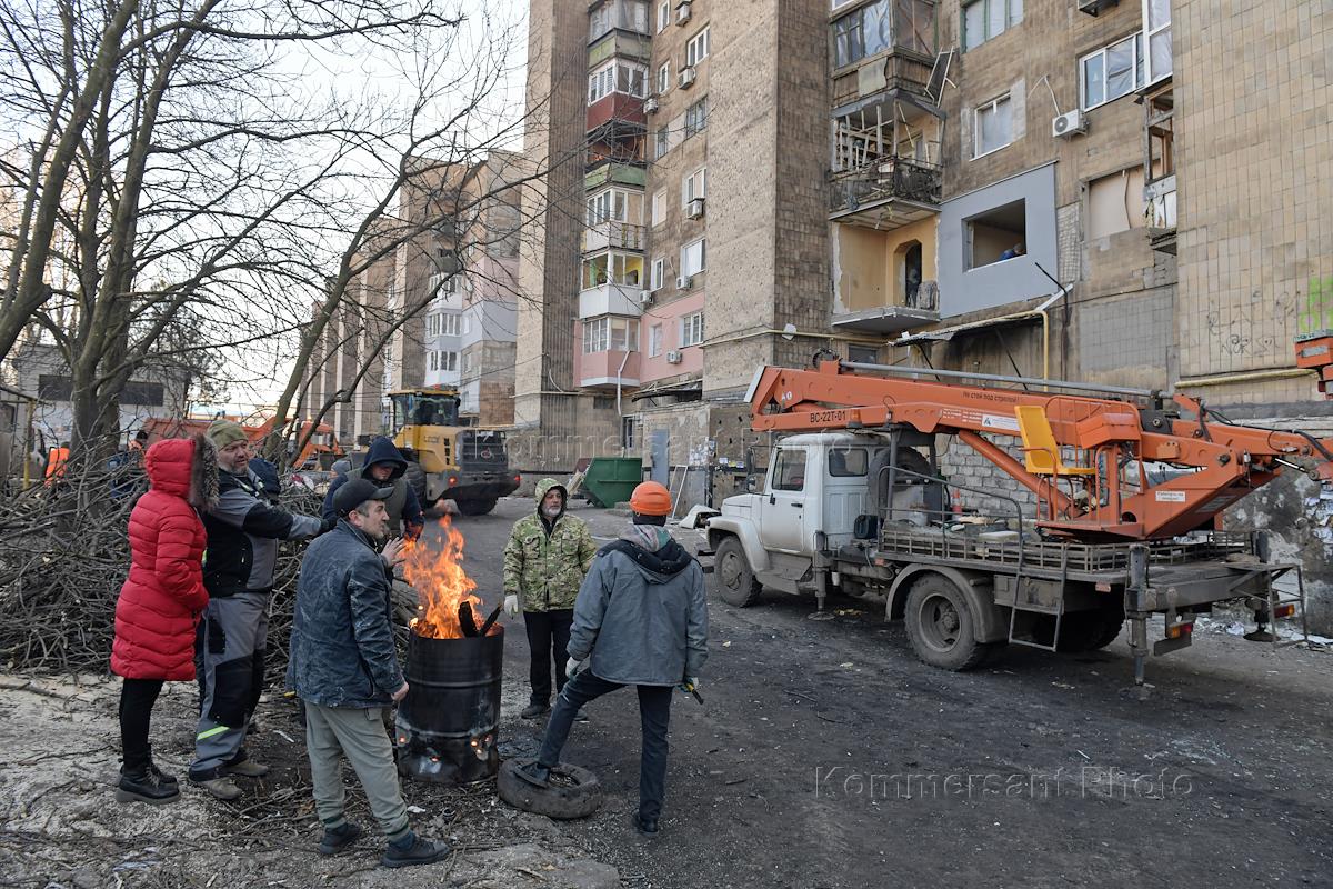 Последствия обстрела Макеевки в Донецкой Народной Республике.