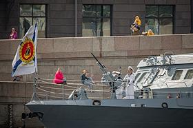 Репетиция парада ко Дню Военно-Морского флота (ВМФ) в акватории Невы.