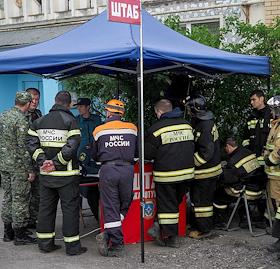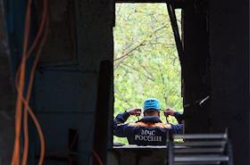 Спасатели проверяют здание, пострадавшее от взрыва газо-воздушной смеси, мобильным диагностическим…