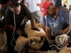 Стрижка овец породы "джалгинский меринос" в СПХ "Племколхоз вторая пятилетка" в селе Большая Джалга…
