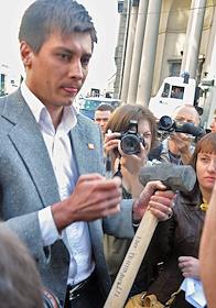 Флэш-моб "Черная метка для депутата" против принятия проекта Генплана Москвы, у здания Мосгордумы.…