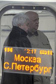 Скоростной поезд "Сапсан" на Ленинградском вокзале. Внешний вид и интерьер.