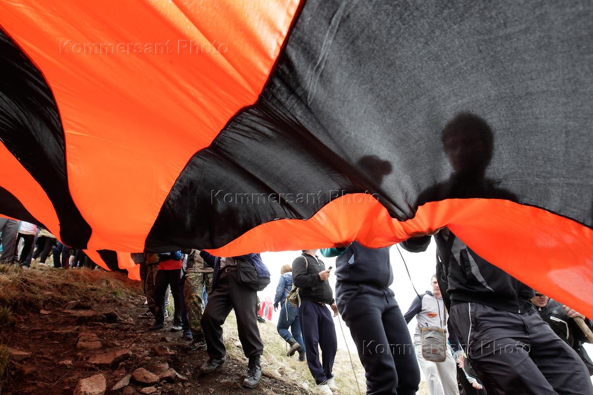 Массовое восхождение на г. Бештау, посвященное Дню Великой Победы. Участники мероприятия подняли на…