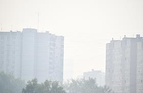 Виды Москвы. Район Западное Дегунино. Дым и смог от лесных пожаров в Рязанской области.