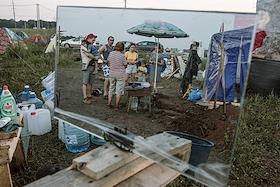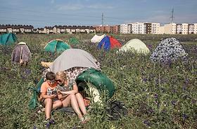 Дольщики жилого комплекса "Миловский парк" развернули палаточный лагерь рядом с территорией стройки.
