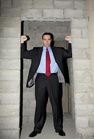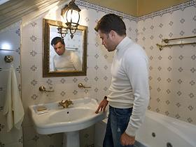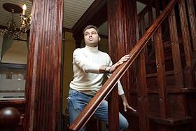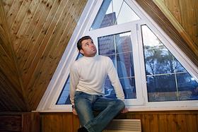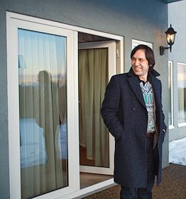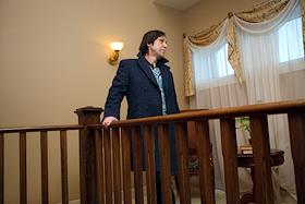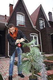 Писатель Олег Рой осматривает коттедж для празднования Нового Года в посёлке "Мещерский".