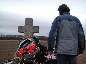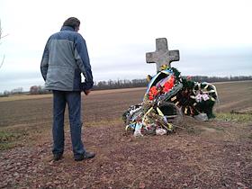 Крест на месте гибели Вячеслава Чорновола (автодорога Борисполь–Золотоноша).