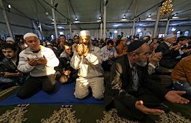 Мусульманский праздник жертвоприношения Курбан-Байрам. Праздничный намаз в Московской Соборной…