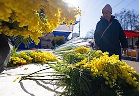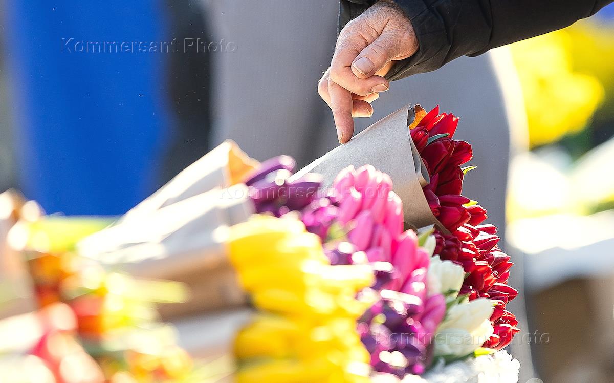 Flower sales in Kaliningrad ahead of International Women's Day on March 8.