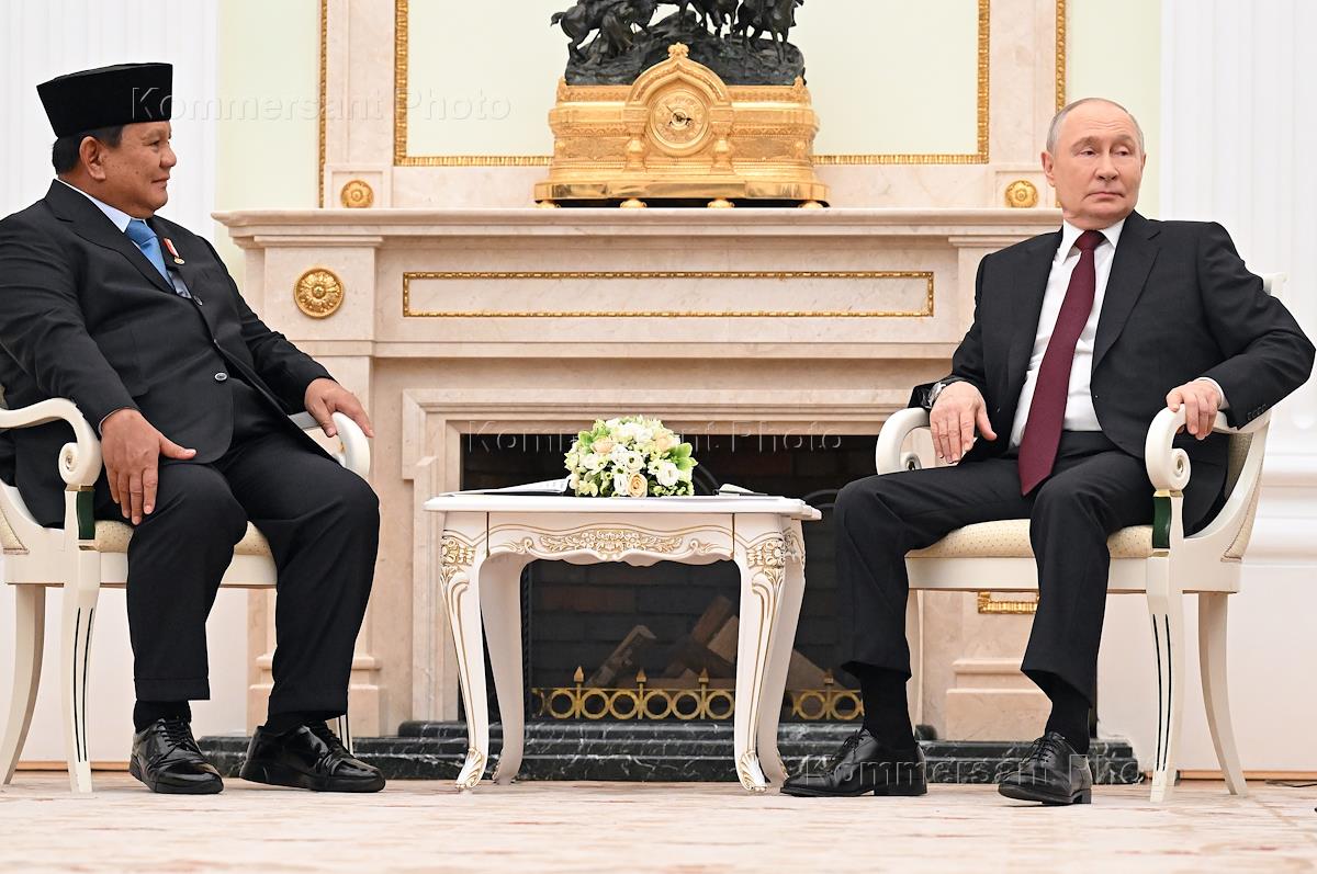 Russian President Vladimir Putin and Indonesian President Prabowo Subianto during a meeting in the…