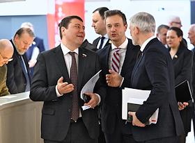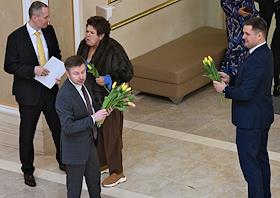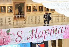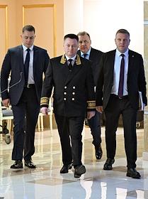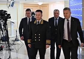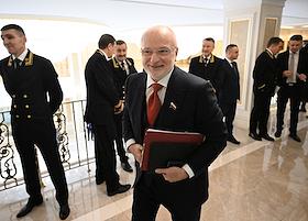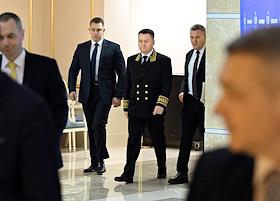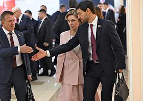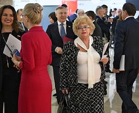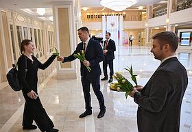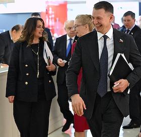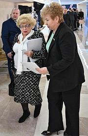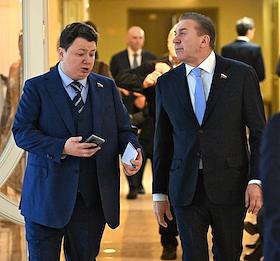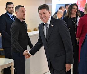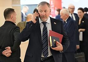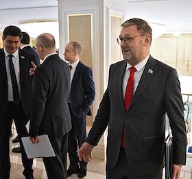 Plenary session of the Federation Council of Russia. Senators on the sidelines.